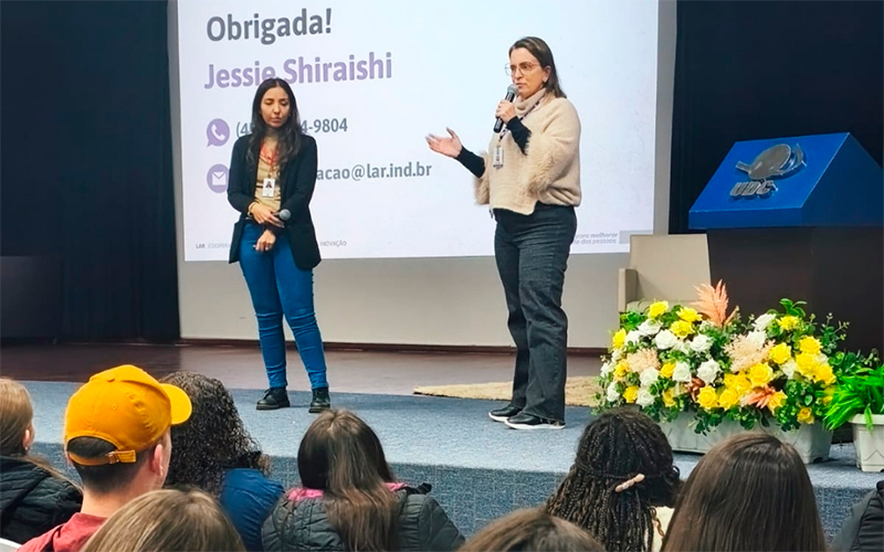A ação contou com a apresentação da Coordenadora de Gestão da Inovação, Jessie Shiraishi, que abordou o Programa de Inovação da Lar e as oportunidades de desenvolvimento de projetos por meio da inovação aberta.