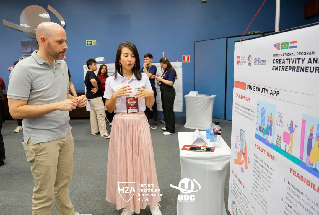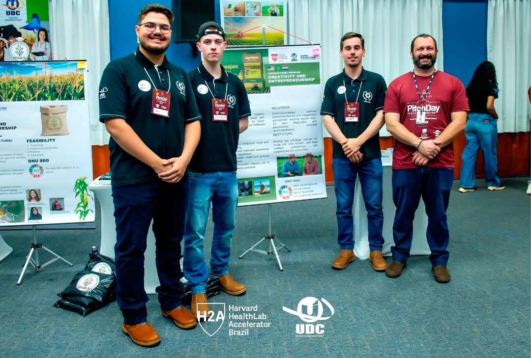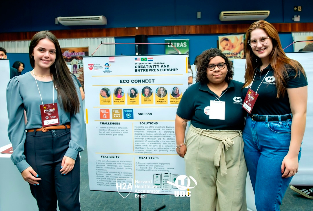 Com projetos criativos e voltados ao desenvolvimento global, os alunos do Centro Universitário UDC Medianeira foram destaque no PitchDay UDC e Harvard HealthLab Accelerator, com ideias marcadas pela relevância e originalidade. Este é um evento que une inovação, empreendedorismo e impacto social sob a mentoria de professores, pesquisadores e equipe da Universidade de Harvard.