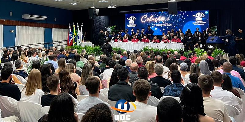 Cerimônia de colação de grau dos formandos dos cursos de Administração, Ciências Contábeis, Direito, Estética, Gestão Comercial e Engenharia Civil.