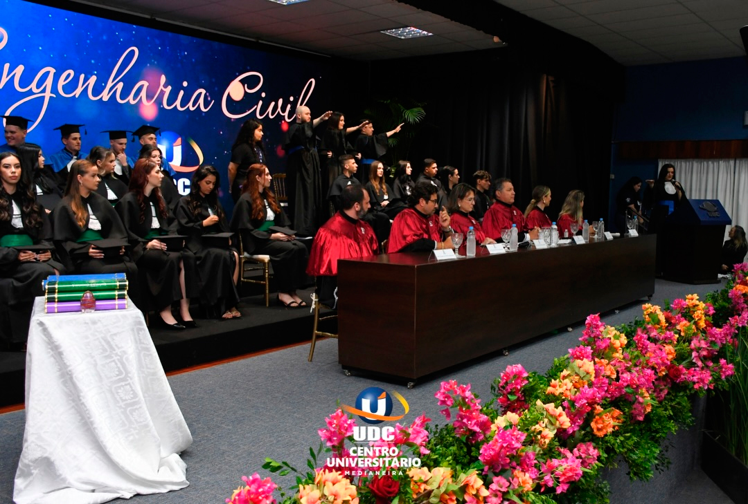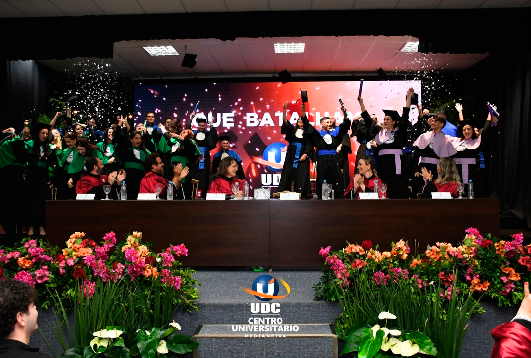 A noite foi de celebração e significado para os formandos de Agronomia, Gestão Comercial, Estética e Cosmética, Letras e Engenharia Civil do Centro Universitário UDC Medianeira.