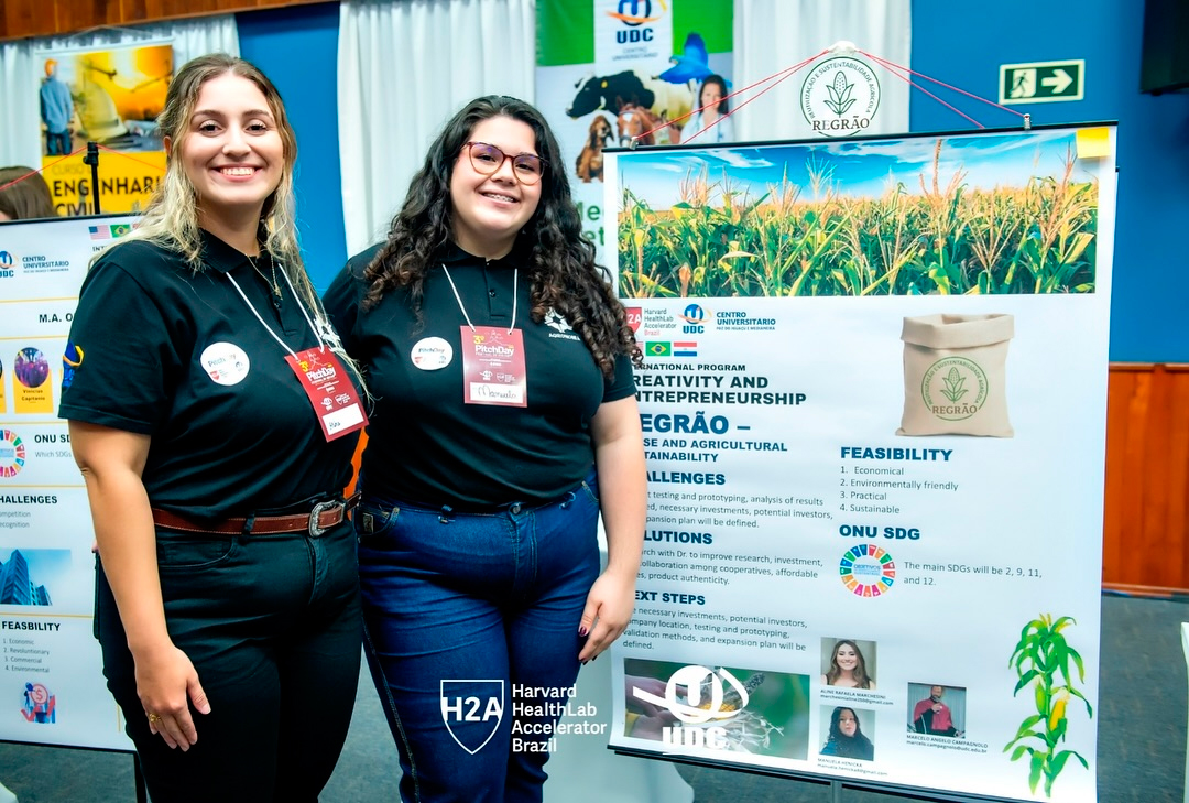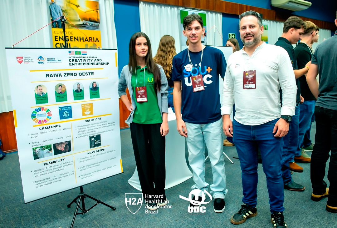Com projetos criativos e voltados ao desenvolvimento global, os alunos do Centro Universitário UDC Medianeira foram destaque no PitchDay UDC e Harvard HealthLab Accelerator, com ideias marcadas pela relevância e originalidade. Este é um evento que une inovação, empreendedorismo e impacto social sob a mentoria de professores, pesquisadores e equipe da Universidade de Harvard.